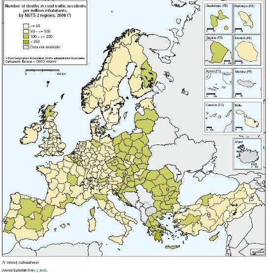 Ειδικότερα, ο συνολικός αριθμός θανάτων από τροχαία μειώθηκε κατά 48% μεταξύ 1991 και 2008 και μειώθηκε κατά 31% από το έτος 2000. Αν και αυτή η θετική τάση μπορεί να διαπιστωθεί σε όλες τις χώρες στην Ευρώπη, υπάρχουν σημαντικές διαφορές μεταξύ των επιμέρους περιοχών και του κινδύνου για θανατηφόρα τροχαία ατυχήματα.
