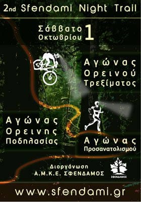 Ολοκληρώθηκε με επιτυχία το 2ο Sfendami Night Trail – αγώνας νυκτερινού ορεινού τρεξίματος – ορεινής ποδηλασίας . 127 αθλητές συμμετείχαν στους αγώνες όπως επίσης μικροί και μεγάλοι συμμετείχαν στο αγώνισμα του προσανατολισμού στις τσουβαλοδρομίες και στην διελκυστίνδα καθώς και στους παιδικούς αγώνες τρεξίματος και ποδήλατου. Μεγάλη συμμετοχή αθλητών, θεατών στο πάρτυ που ξεκίνησε με τους τερματισμούς των αγώνων και κράτησε ως αργά.