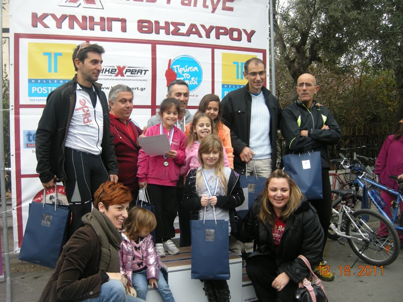 Το Ποδηλατικό Κυνήγι Θησαυρού έλαβε τέλος αφήνωντας τις καλύτερες αναμνήσεις σε όλους… Τα μικρά παιδιά πρωταγωνιστές του παιχνιδιού έπαιξαν, έδρασαν και έμαθαν δίπλα στους μεγαλύτερους σε μία γιορτή που δεν άφησε κανένα παραπονεμένο. Οι διοργανωτές σε συνεργασία με την Πρωτοβουλία «Πρώτα το Παιδί» οργάνωσαν ένα διασκεδαστικό παιχνίδι με πολλά δωράκια για όλα τα παιδιά. Οι μικροί ποδηλάτες δεν κέρδισαν μόνο το χειροκρότημα του κοινού τερματίζοντας στο παιχνίδι αλλά και δώρα, αναμνηστικά διπλώματα και παιδικά ποδηλατάκια.