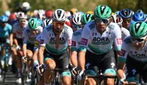 Όμως, τους περίμενε άλλους είδους Bora… Η Γερμανική ομάδα ακολούθησε πολύ στοχευμένη τακτική επιβάλλοντας από την αρχή πολύ γρήγορο, εξοντωτικό για πολλούς ρυθμό. Στο ξεκίνημα του etape και καθώς η πρώτη ανάβαση ήταν στο 9ο χιλιόμετρο, ο κάτοχος της πουά φανέλας, Benoit Cosnefroy (AG2R La Mondiale) επιτέθηκε θέλοντας να πάρει τους βαθμούς της ανάβασης. Προσπάθησαν να τον ακολουθήσουν οι Lilian Calmejane (Total Direct Energie) και Michael Schär (CCC) αλλά δεν τα κατάφεραν.