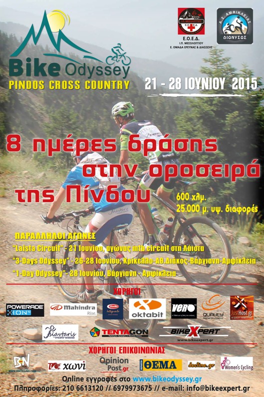 To Mtbxpert διοργανώνει οκταήμερο αγώνα ορεινής ποδηλασίας στην ευρύτερη περιοχή των νομών Ιωαννίνων, Τρικάλων, Καρδίτσας, Ευρυτανίας, Φωκίδας και Φθιώτιδας από τις 21 Ιουνίου 2015 έως τις 28 Ιουνίου 2015 με την ονομασία Bike Odyssey.